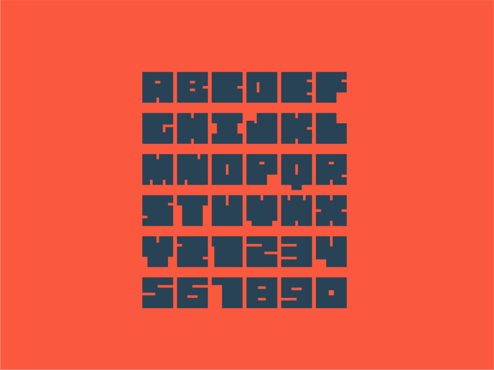 A wonderfully chunky display typeface. For each letter, I started with a square and then subtracted the fewest bits possible to create the final shape. The result is a simple, minimal design with lots of personality.